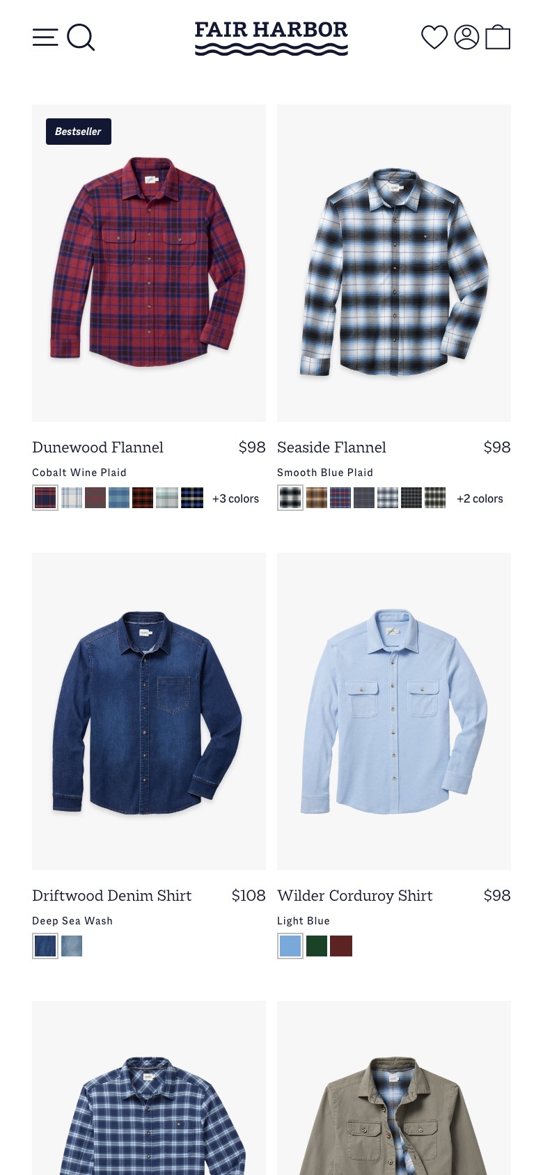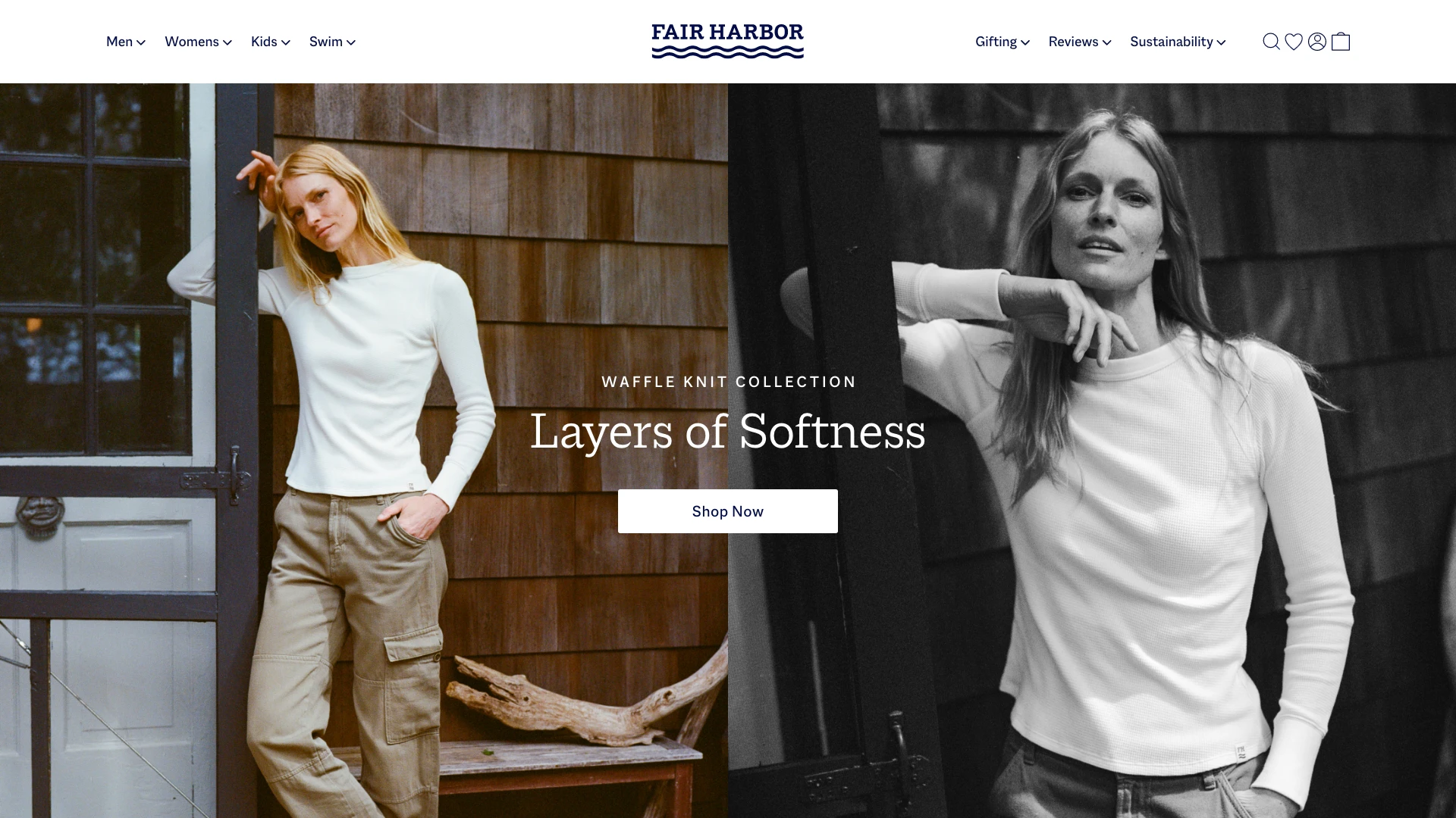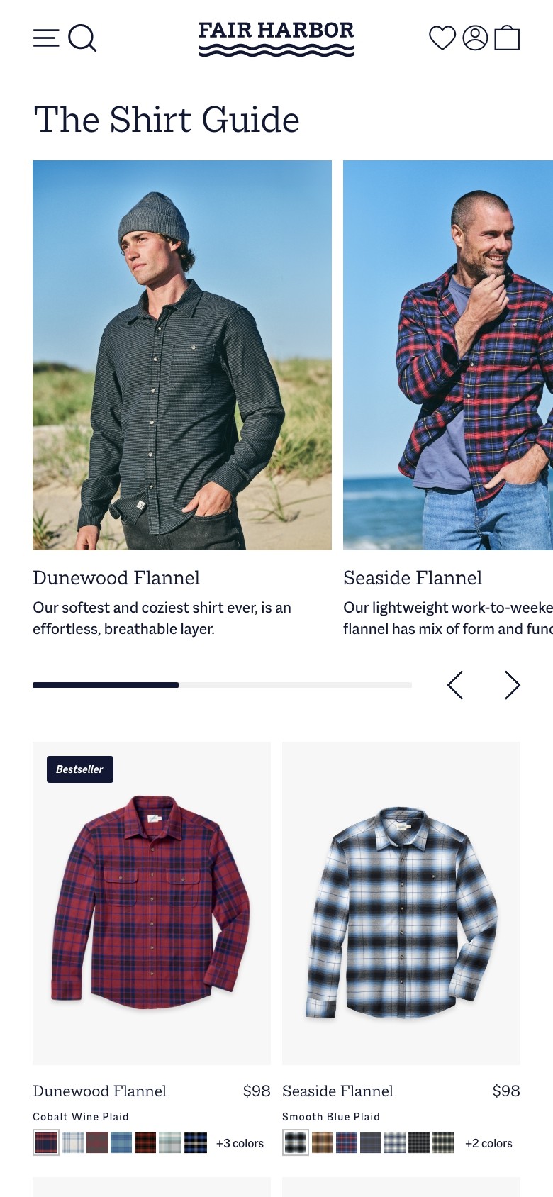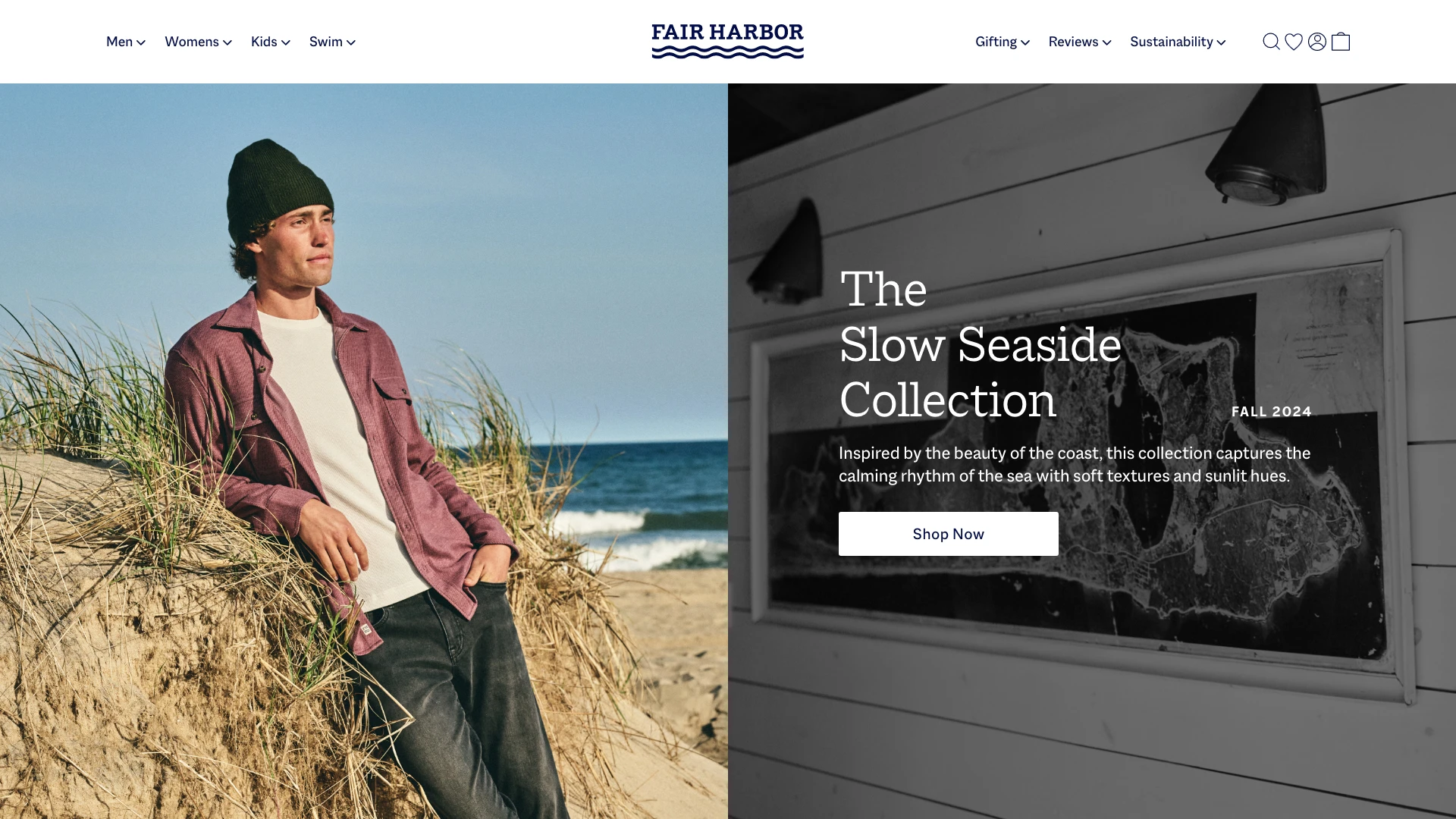 Fair Harbor is a sustainable lifestyle brand creating versatile clothing from recycled materials like plastic bottles and seashells. Originally known for mens swimwear, it has grown into a year-round collection that now includes womens and kids. As the brand expanded, its visual language was refined across photography, email, paid media, and web to balance its signature brightness with richer seasonal tones. With the catalog growing from 3 to 150 SKUs, the product landing page was redesigned with customizable filters, a faster checkout flow, and immersive product modules that clearly communicate features, values, and sustainability practices.