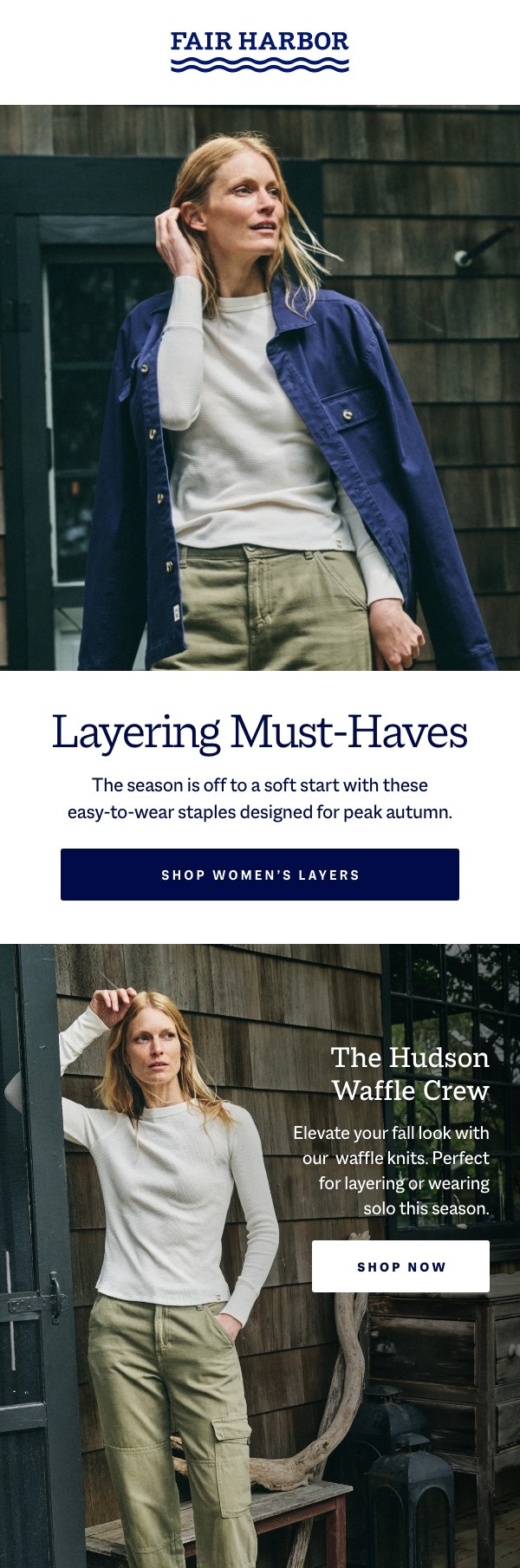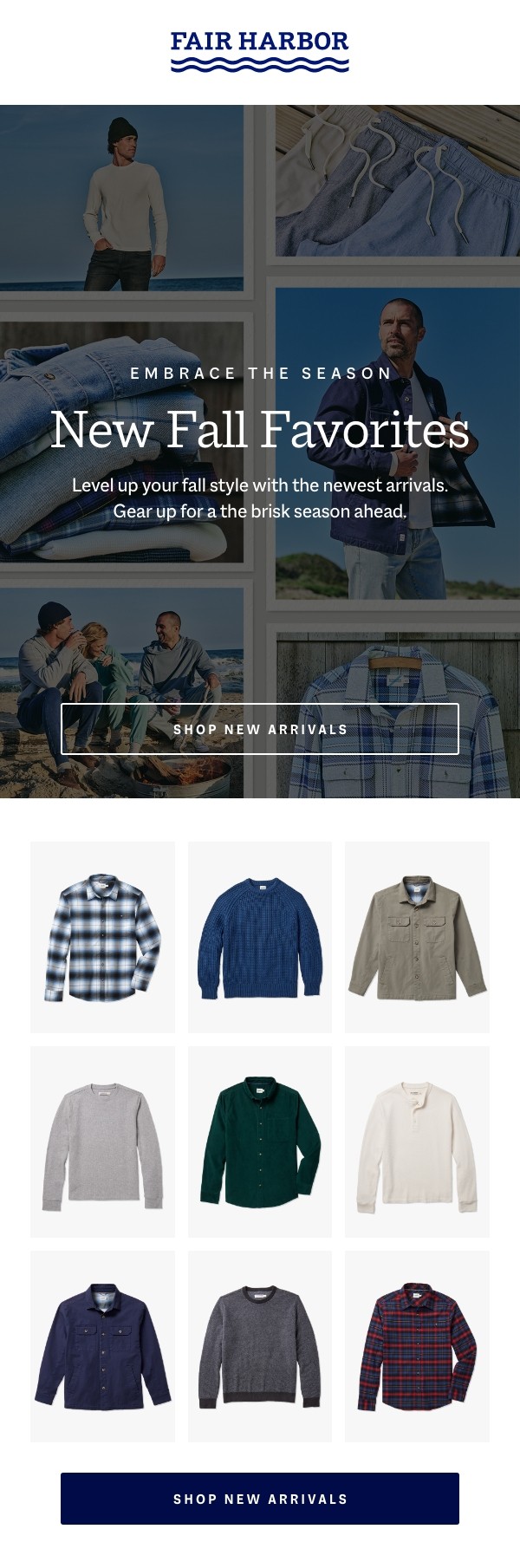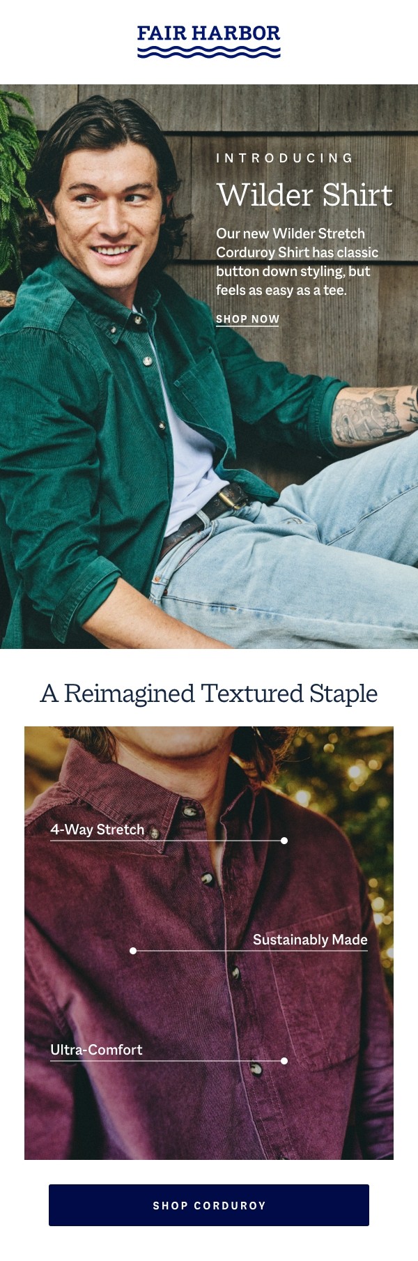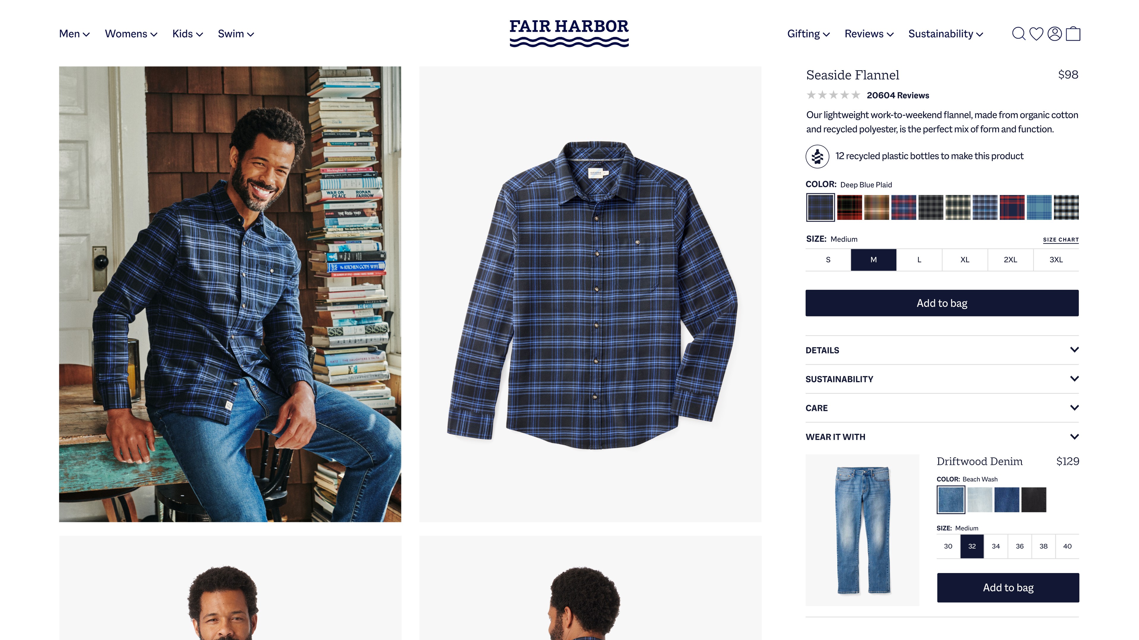 Fair Harbor is a sustainable lifestyle brand creating versatile clothing from recycled materials like plastic bottles and seashells. Originally known for mens swimwear, it has grown into a year-round collection that now includes womens and kids. As the brand expanded, its visual language was refined across photography, email, paid media, and web to balance its signature brightness with richer seasonal tones. With the catalog growing from 3 to 150 SKUs, the product landing page was redesigned with customizable filters, a faster checkout flow, and immersive product modules that clearly communicate features, values, and sustainability practices.