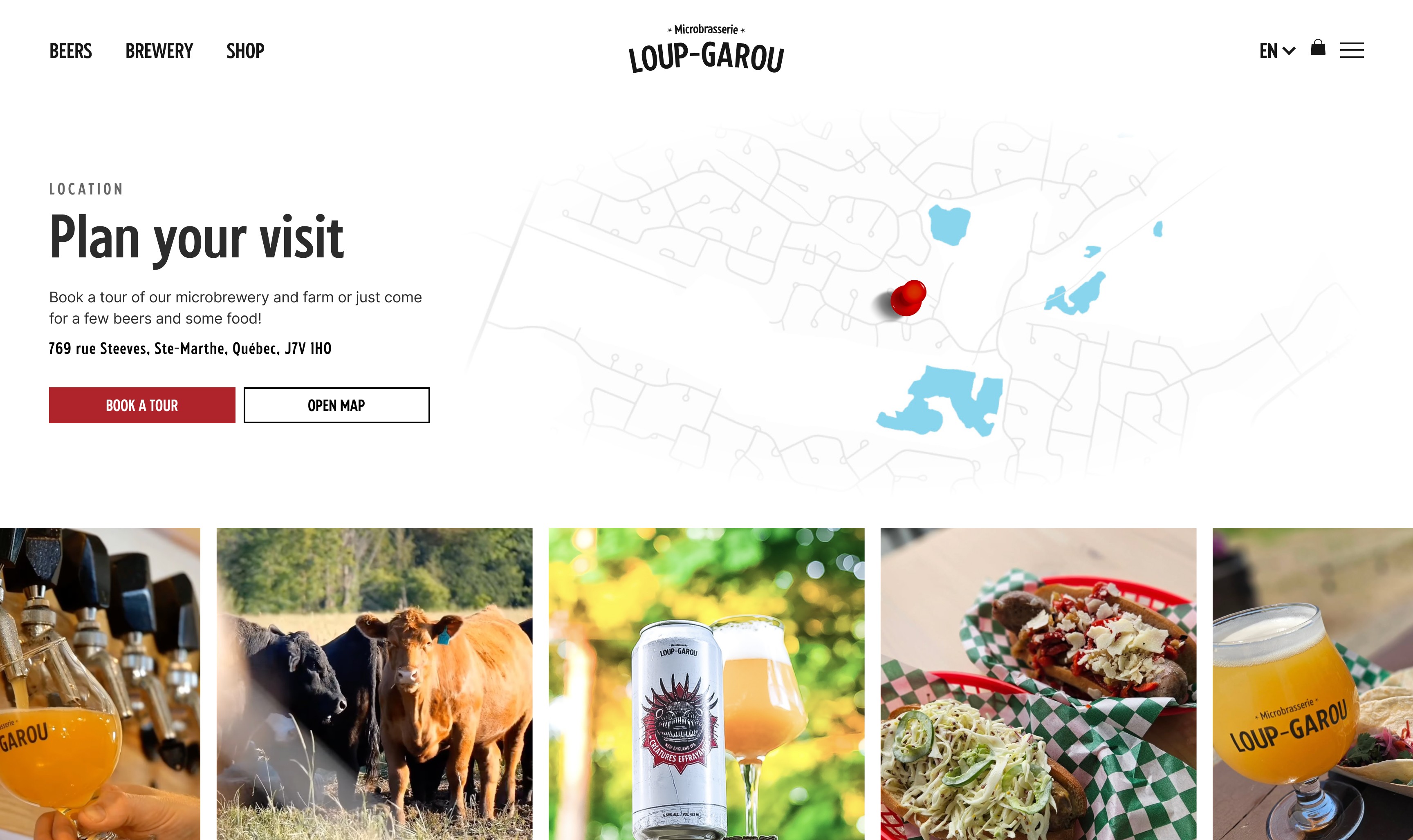Microbrasserie Loup Garou is a new brewery set on a picturesque farm in Sainte Marthe, Québec, alongside an artisanal butcher. Its name draws from regional folklore, echoing the legendary werewolf stories rooted in Québec’s cultural history. The brewery’s identity blends past and present with typography inspired by vintage hunting licenses and a rich, nature driven color palette. The modern farmhouse setting and immersive digital experience extend this story, inviting visitors to explore their beer selection.